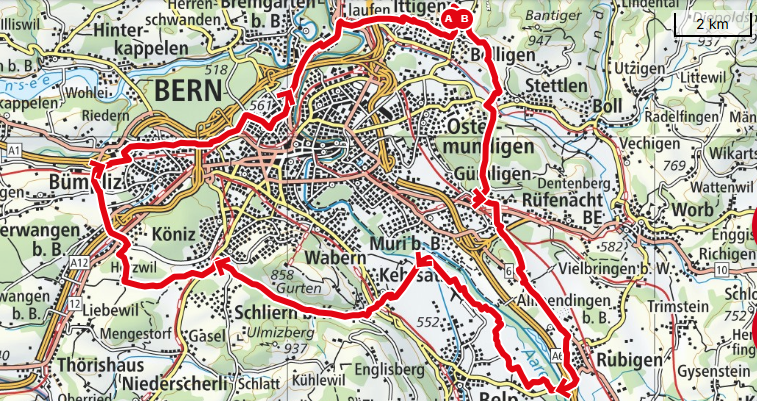 Ce parcours relie les communes autour de Berne et offre une détente locale par excellence. Ce parcours a été réalisé avec les membres du CRF (Club de randonnée et de ski de fond de Berne)